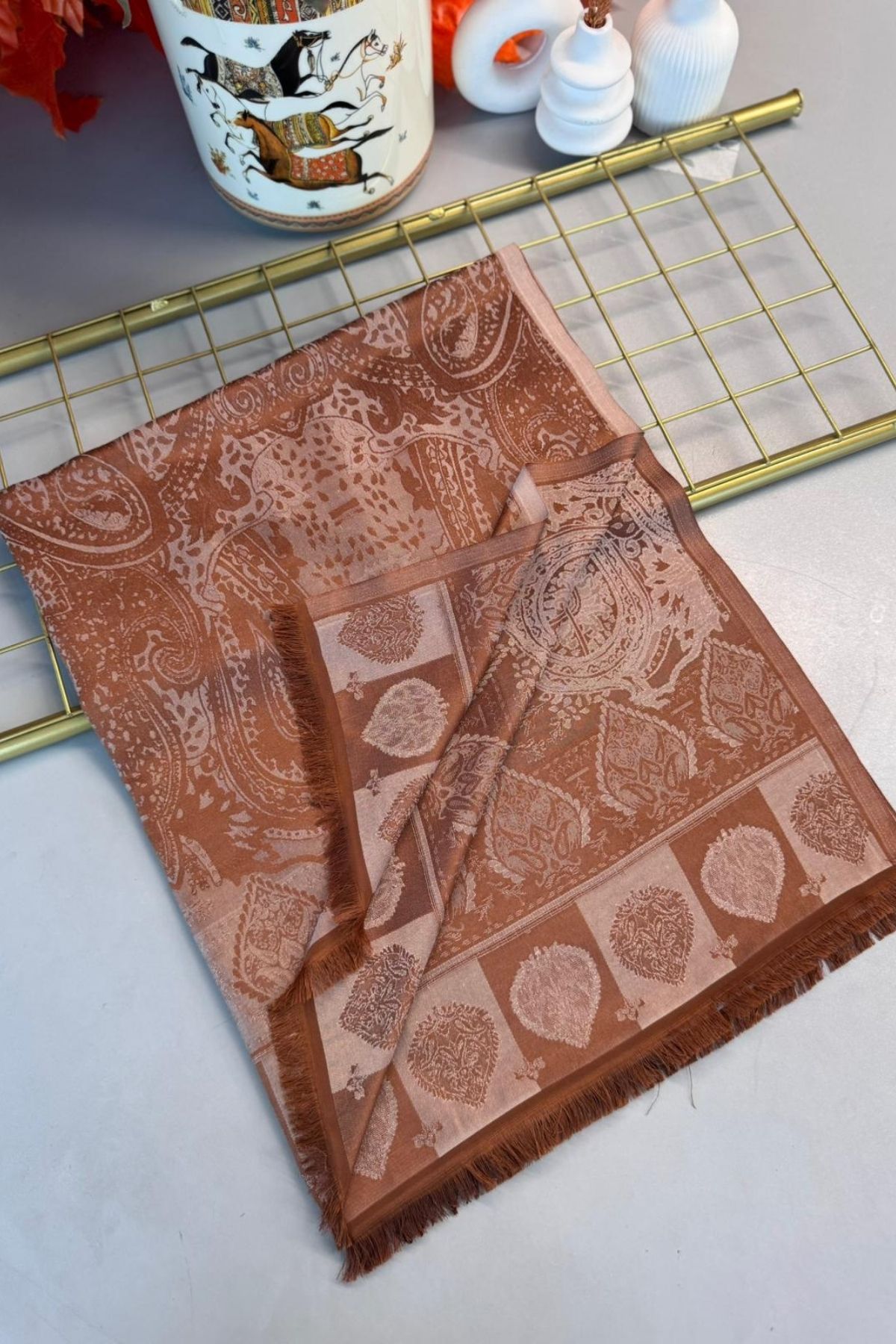 Bella Kendinden Dokulu Çift Taraflı İpek Şal – 4598 – Kahve