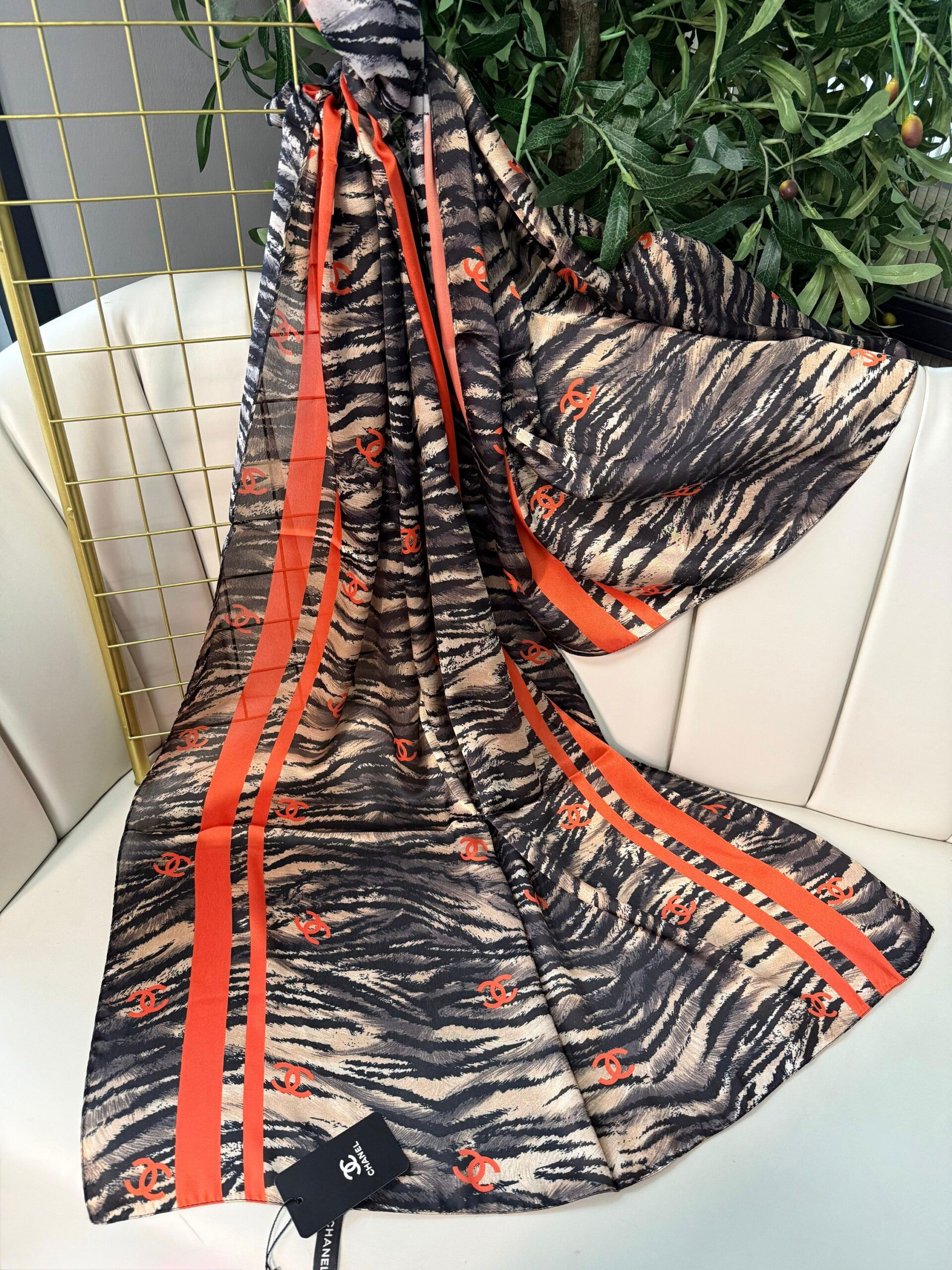 Channel Çizgili leopar çifttaraflı vual ipek şal-43080 TuruncuChannel Çizgili leopar çifttaraflı vual ipek şal-43080 Turuncu