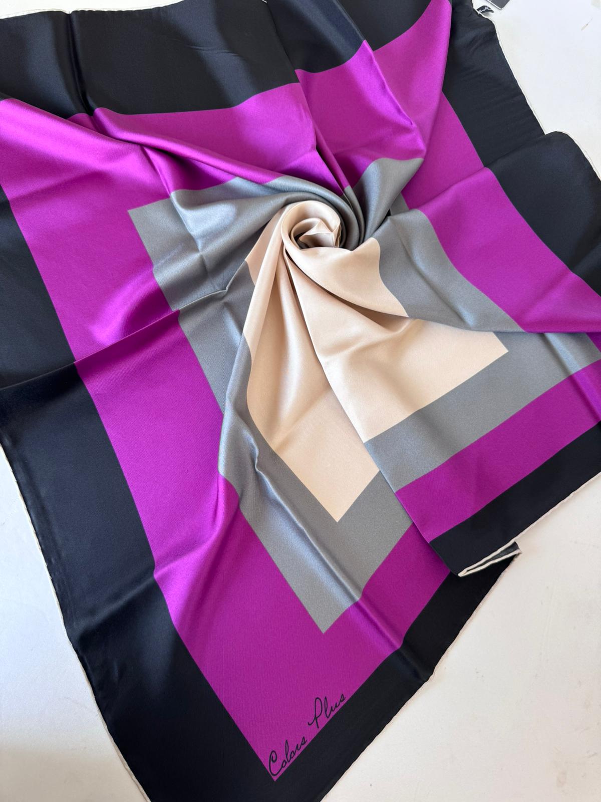 COLOR PLUS KARE DESEN %100 İPEK EŞARP 19011998 – Lacivert Mürdüm