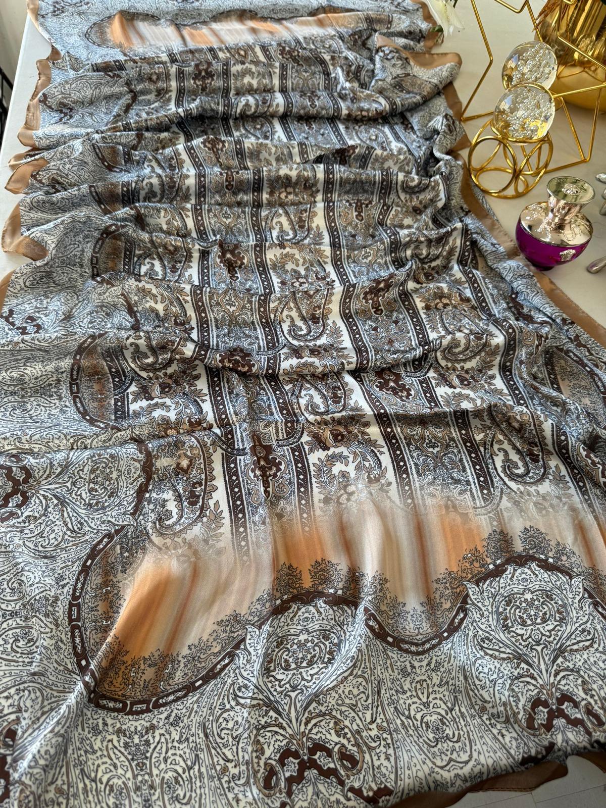 Etro Marka Yeni Sezon İthal Etnik Desen Vual İpek Şal – Vizon