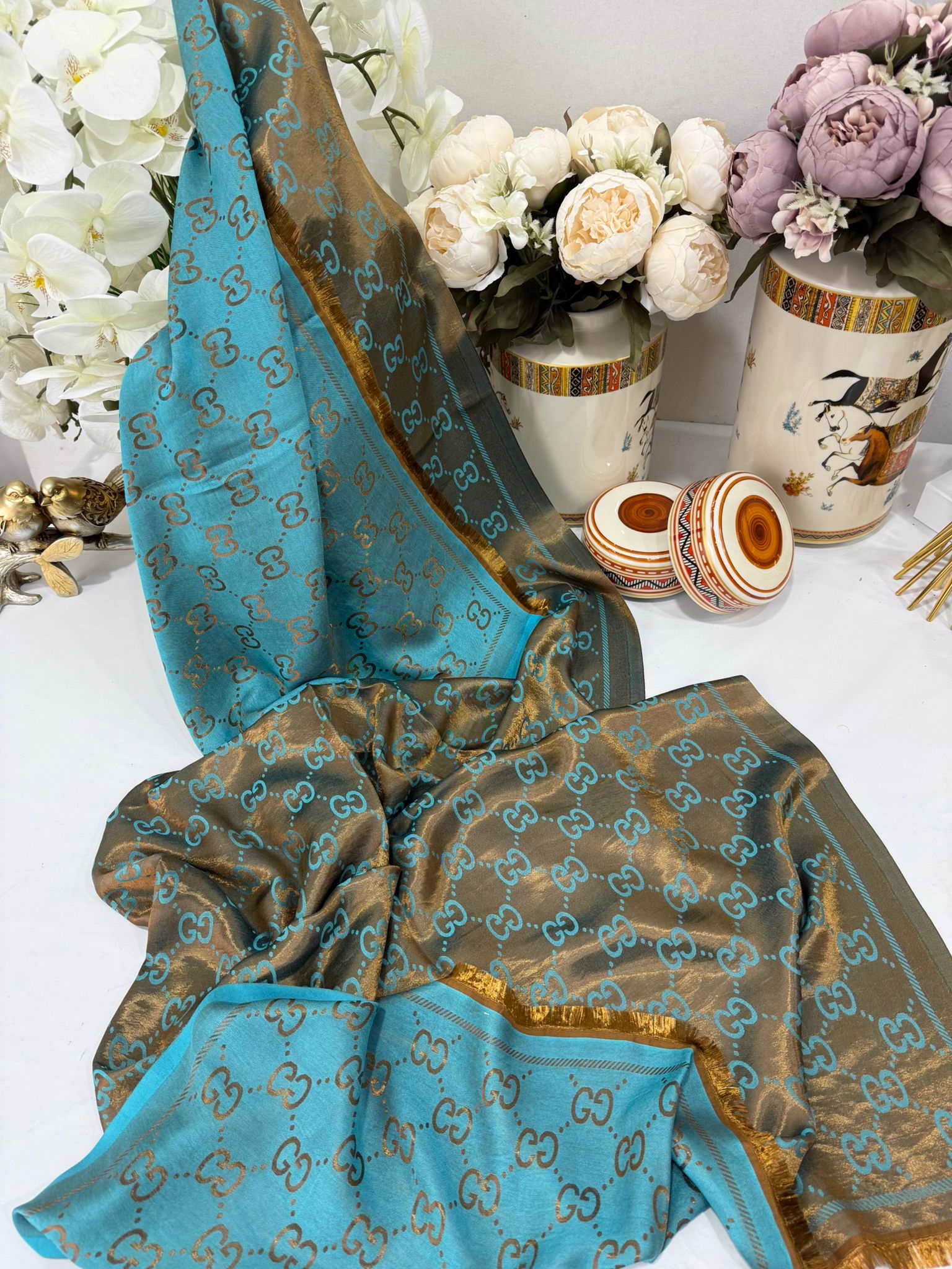 G Desen İpek Jakar Çift Renk Şal – Mint-Vizon