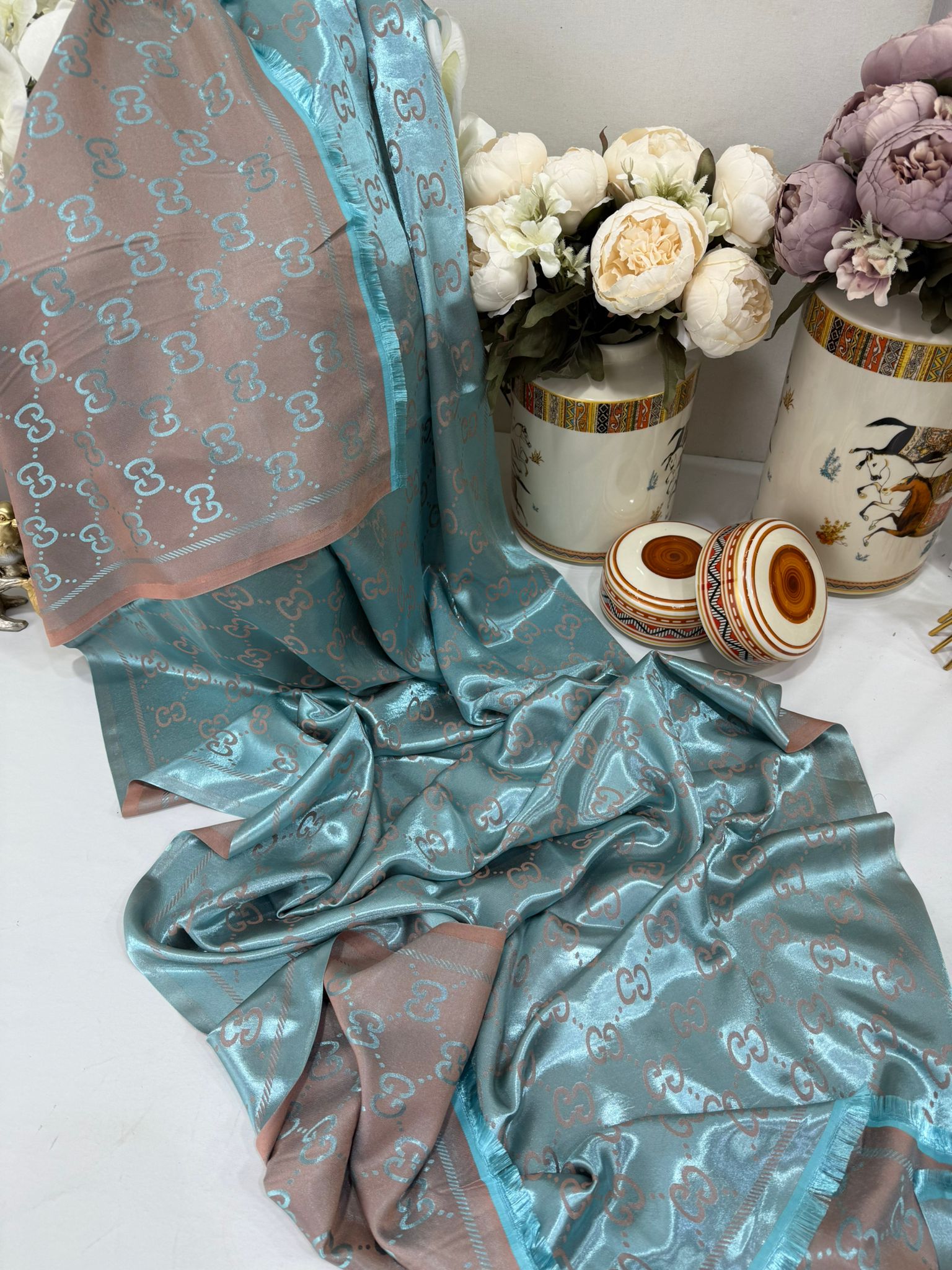 G Desen İpek Jakar Çift Renk Şal – Mint
