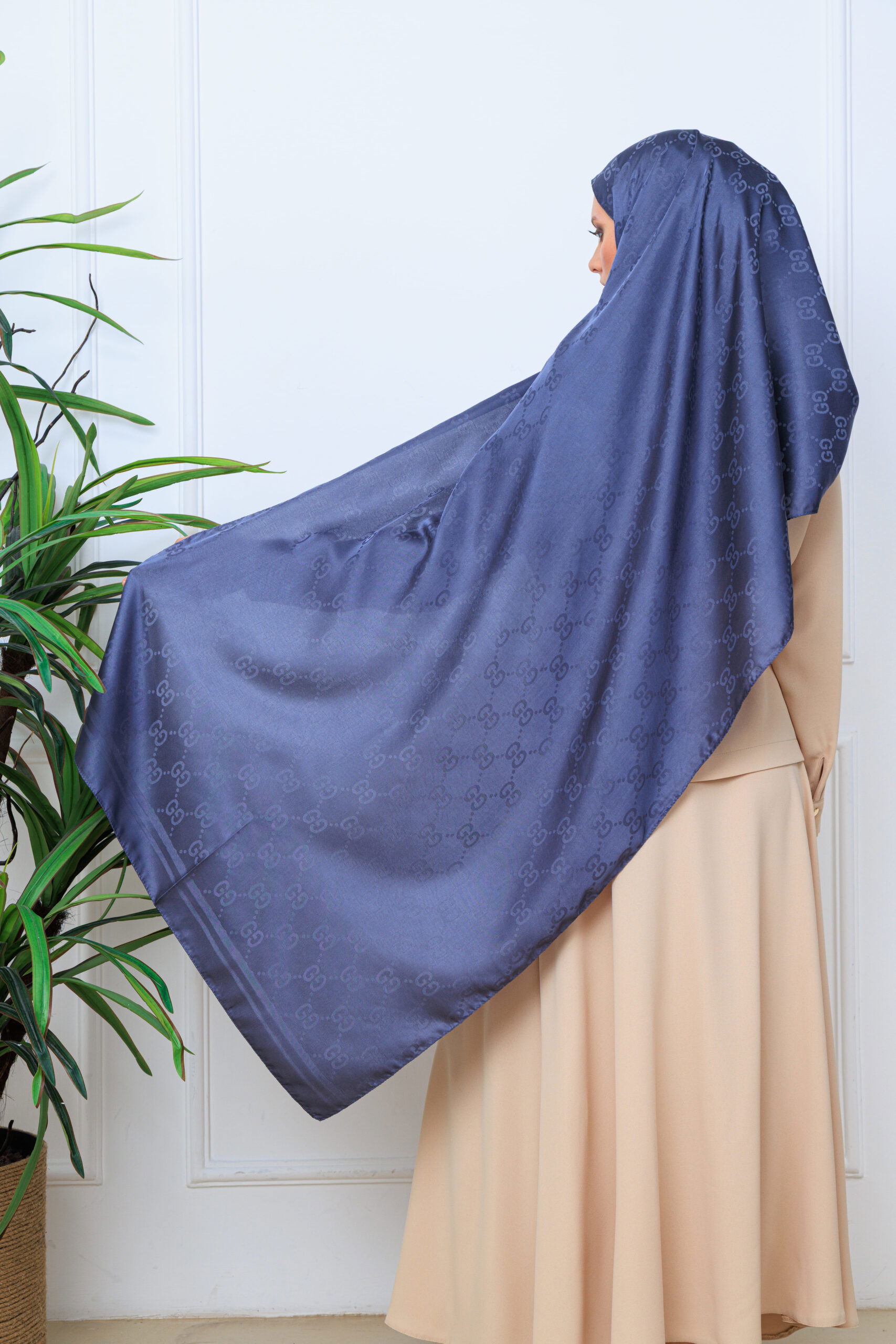 G Desen Pamuk İpeksi Jakar Şal – İndigo