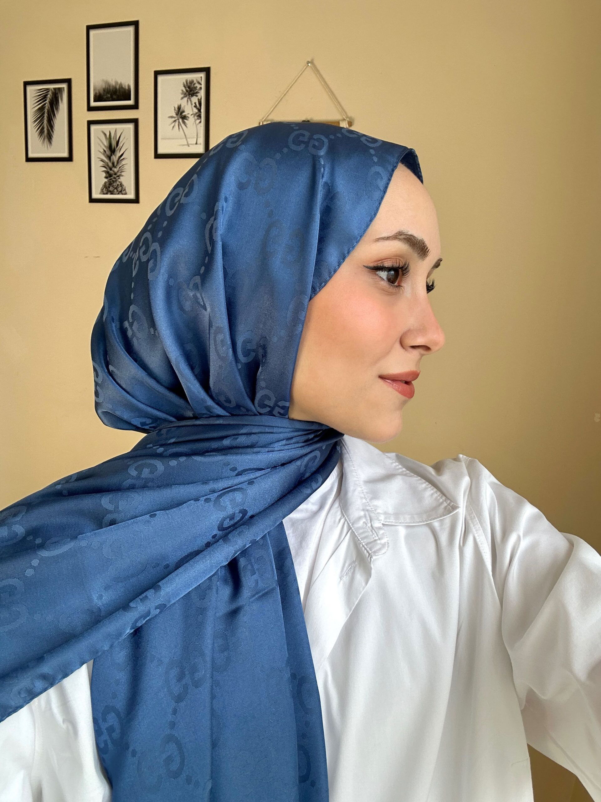 G Desen Pamuk İpeksi Jakar Şal 908204 – İndigo