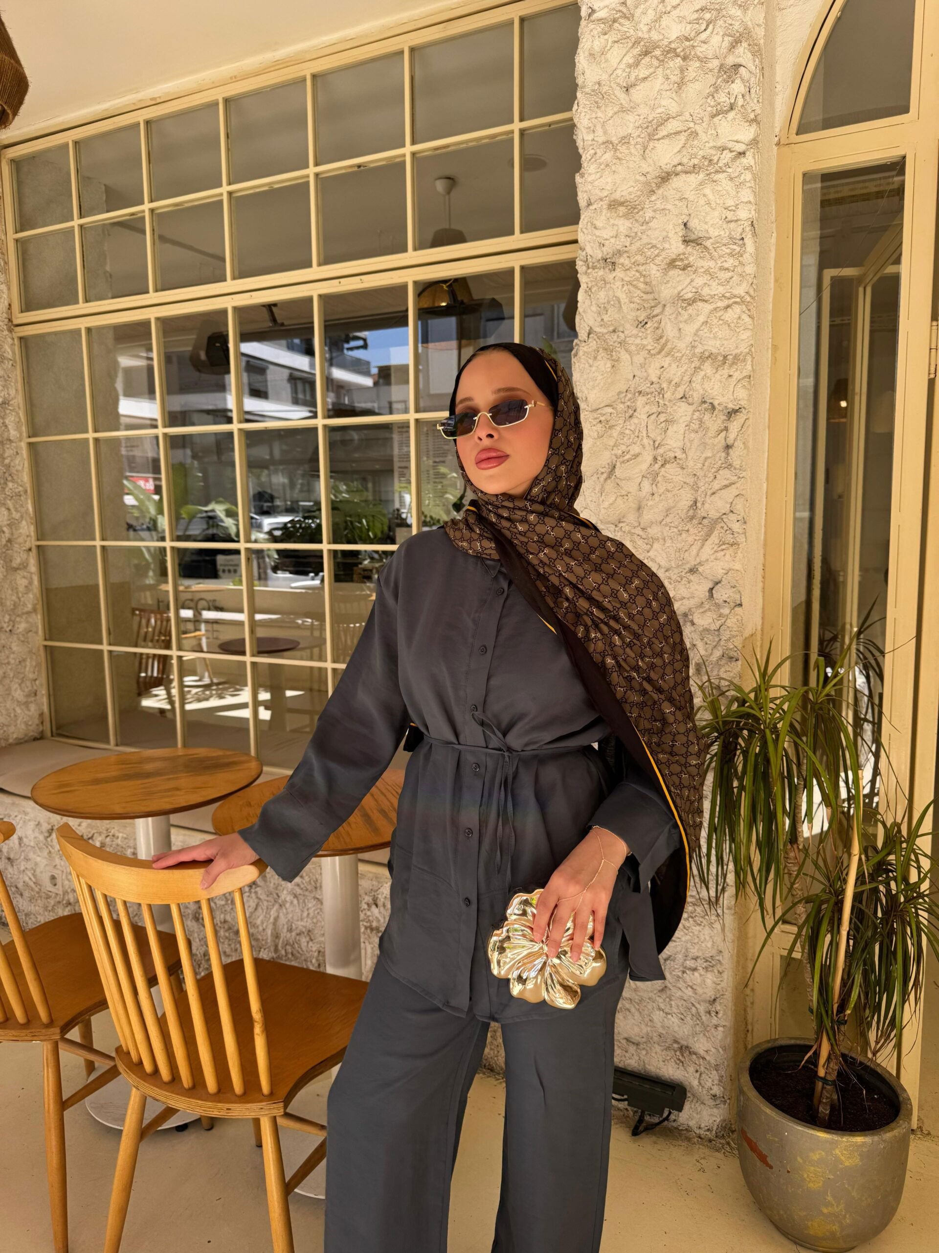 Gucci stilinden ilham alan ikonik desen anlayışını, yün–ipek karışımının yumuşak ve zarif dokusuyla buluşturan bu şal; hafif ama sıcak tutan yapısıyla konforlu, akışkan düşüşüyle ise sofistike bir görünüme sahiptir. Günlük şehir stilinden özel davet kombinlerine kadar lüks bir dokunuş katar.