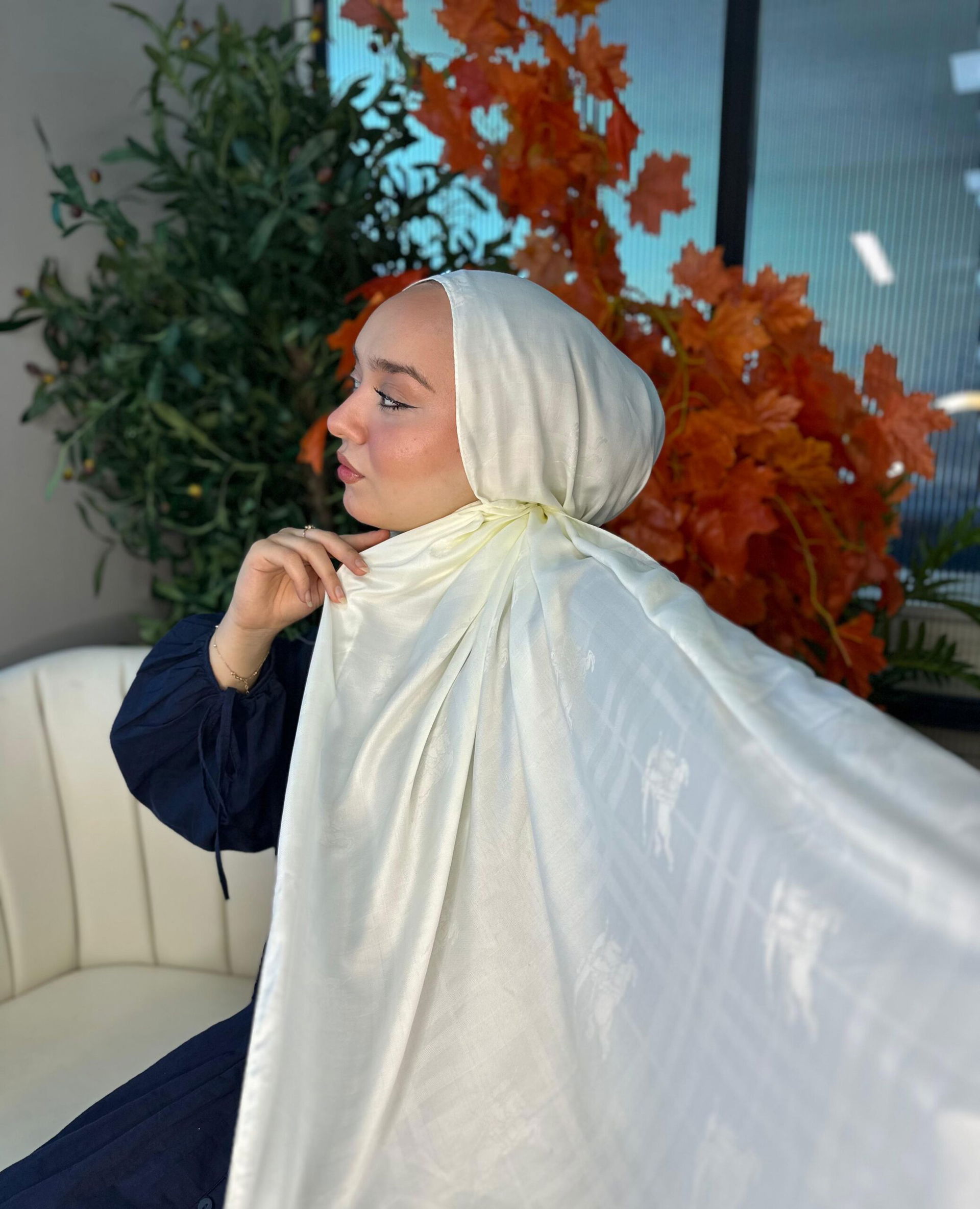 Hermes Desenli İpeksi Jakar Şal – Ekru