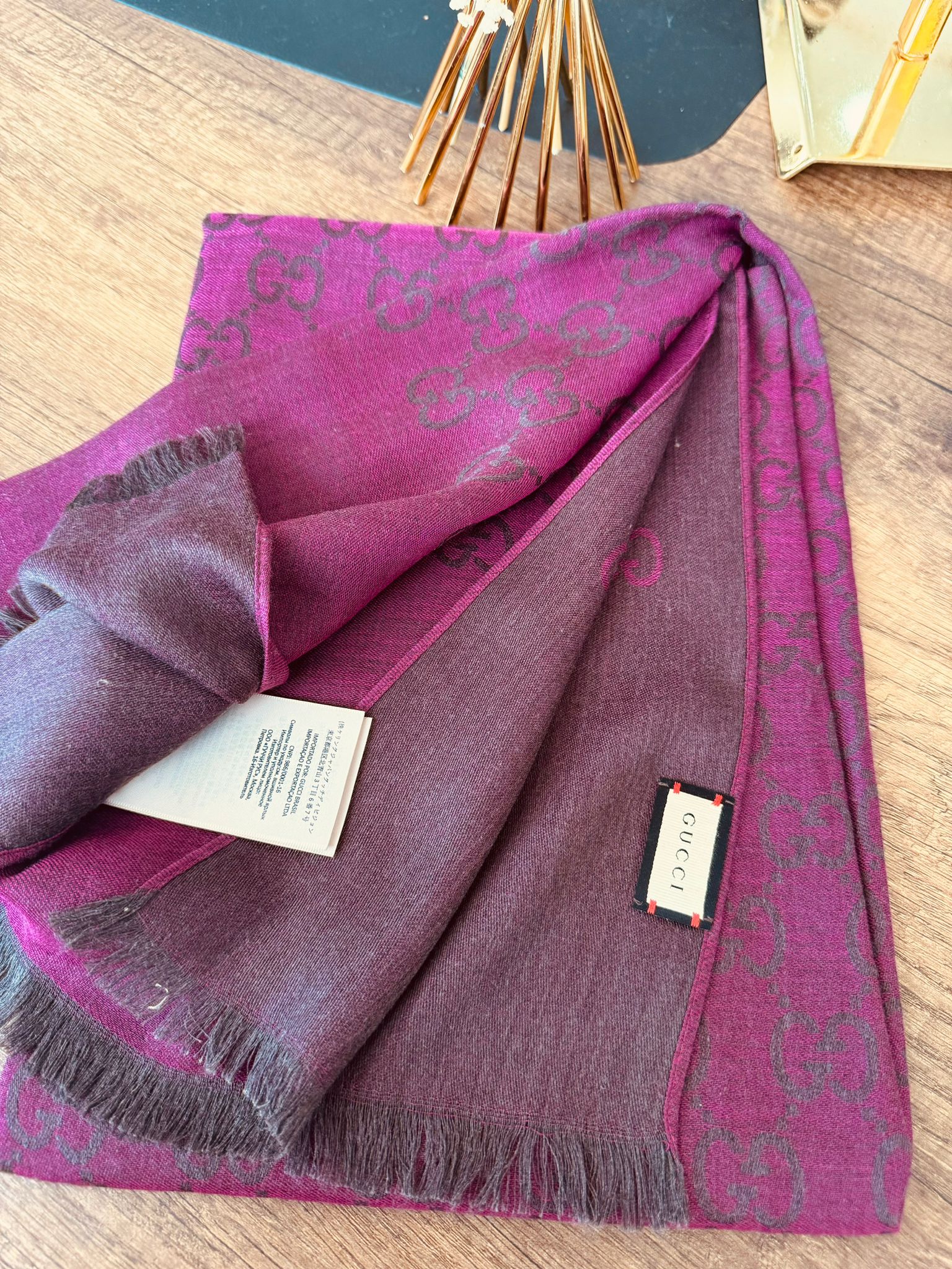 İthal A Kalite Gucci Yun İpek Çİft Taraflı Şal 87452 – Fuşya