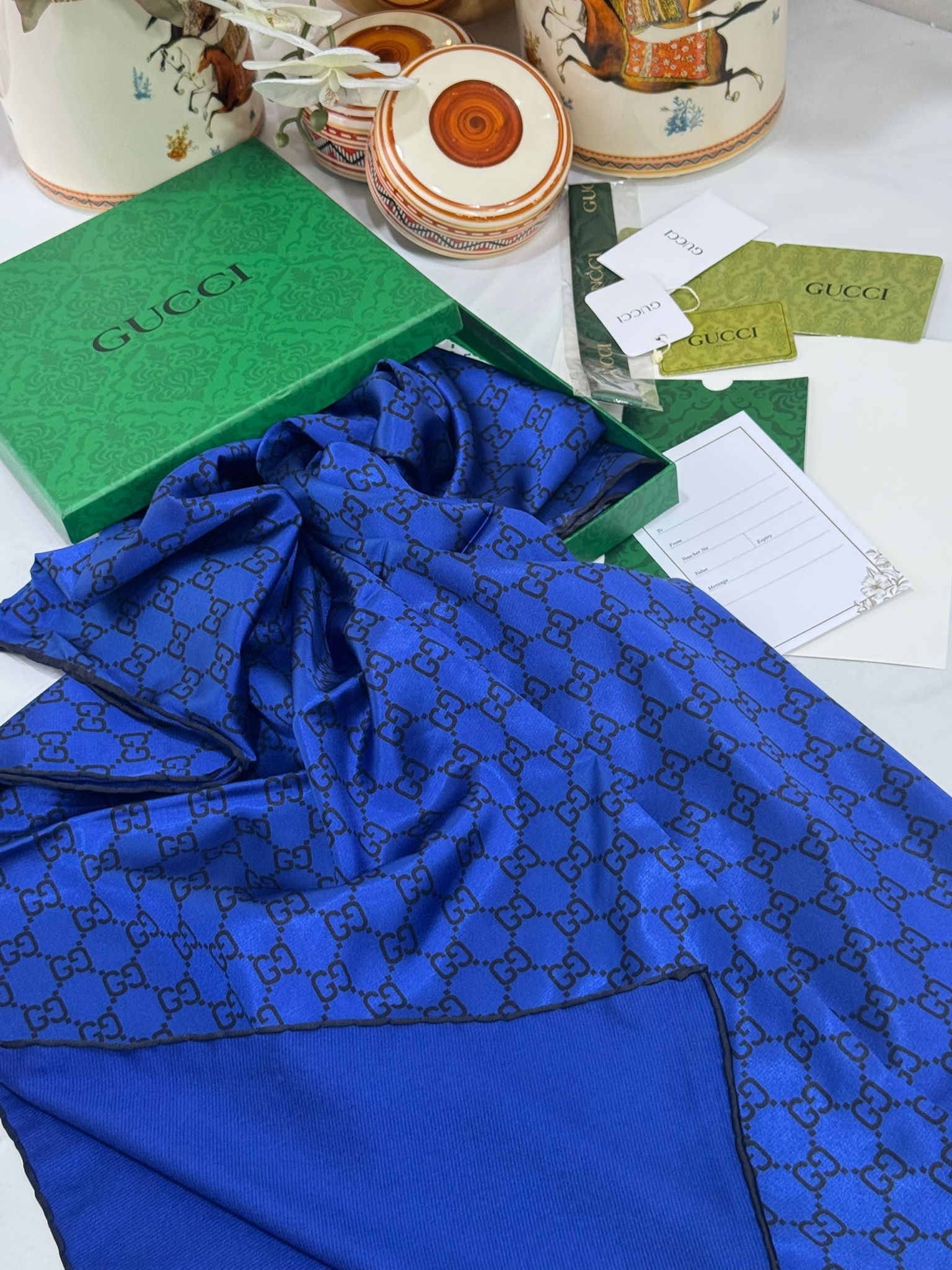 İthal Çifttaraflı Gucci İnci Vual İpek ŞalÜrün Kendine Özel Kutusutla gelmektedir
