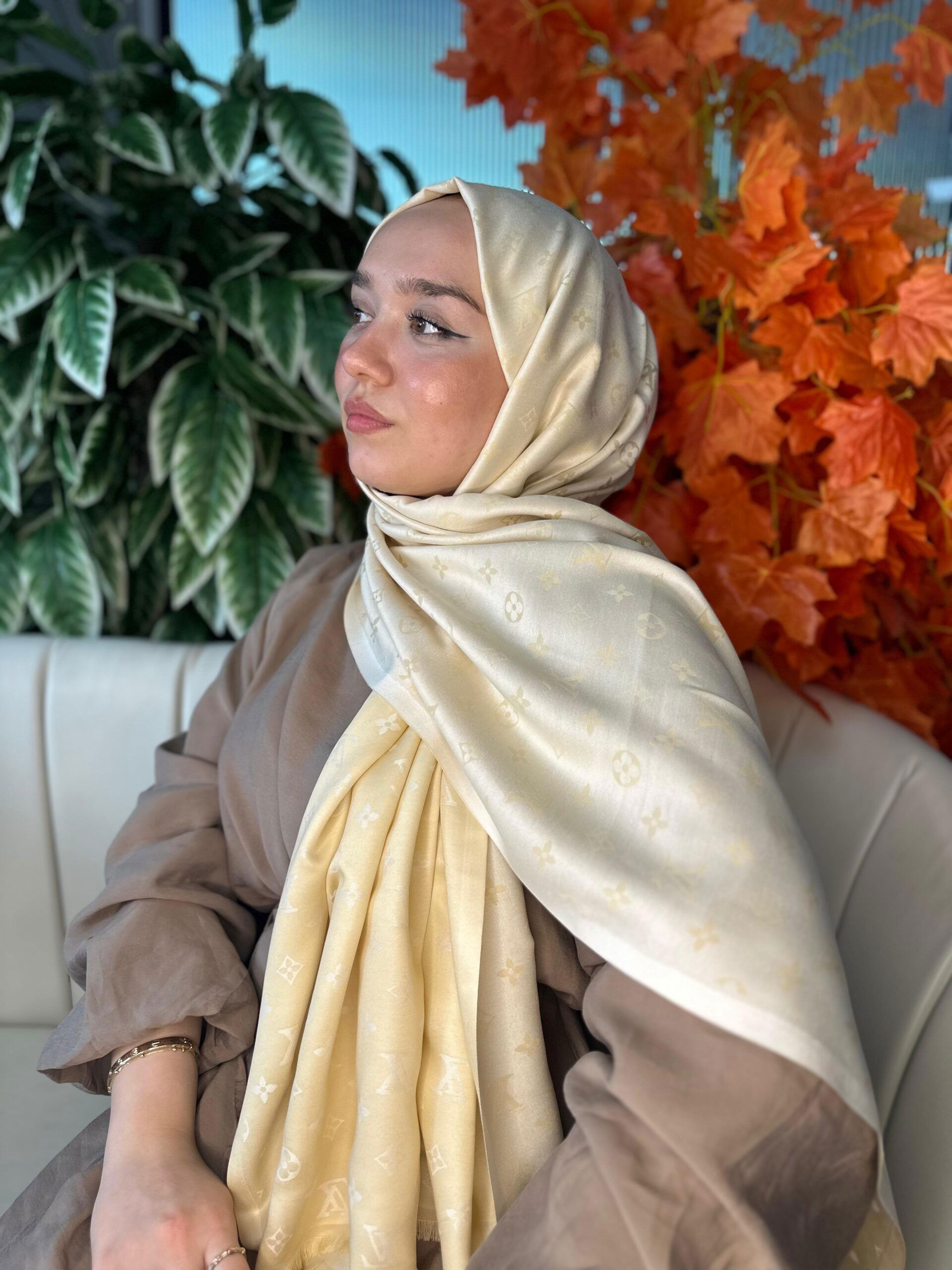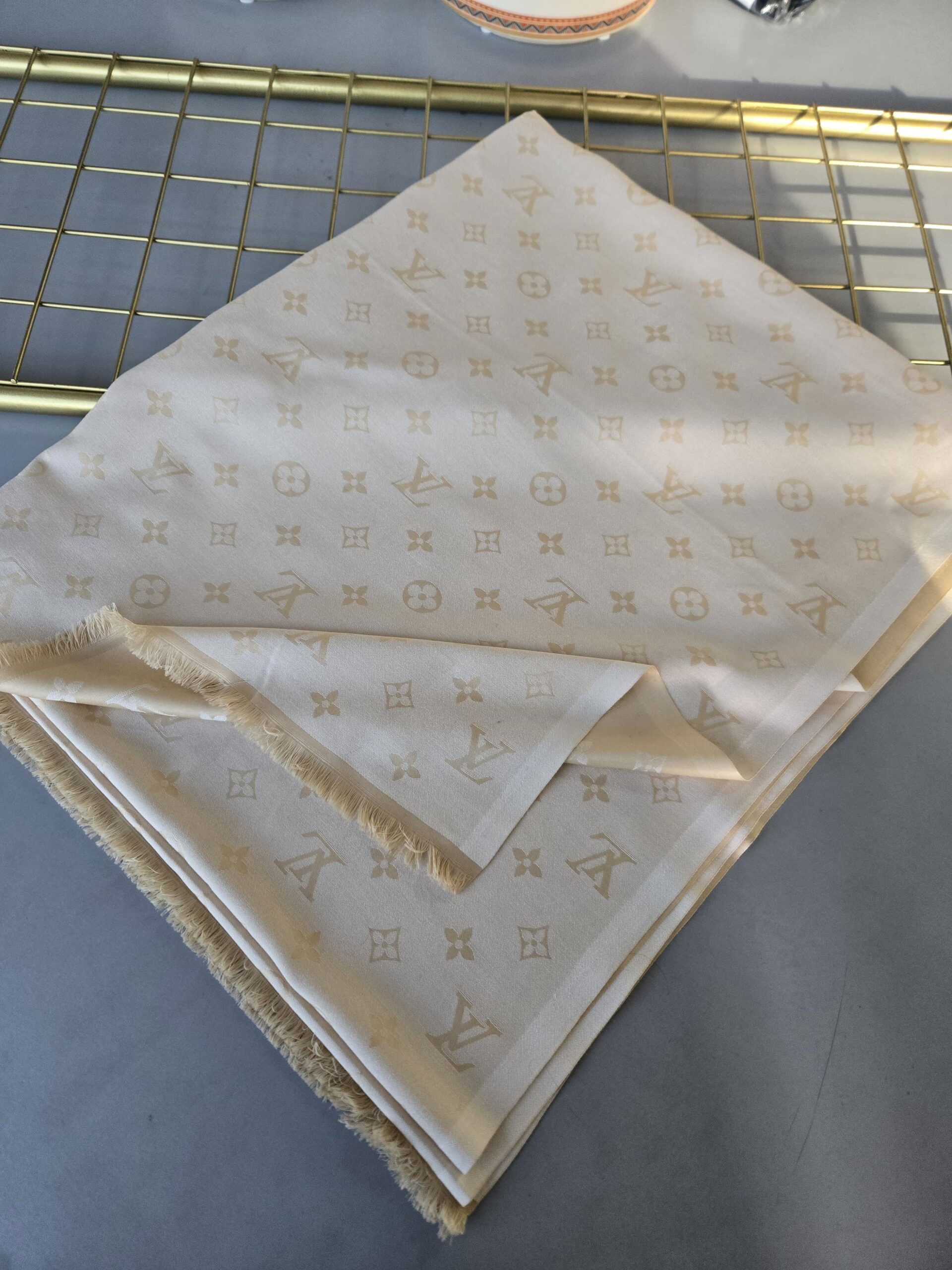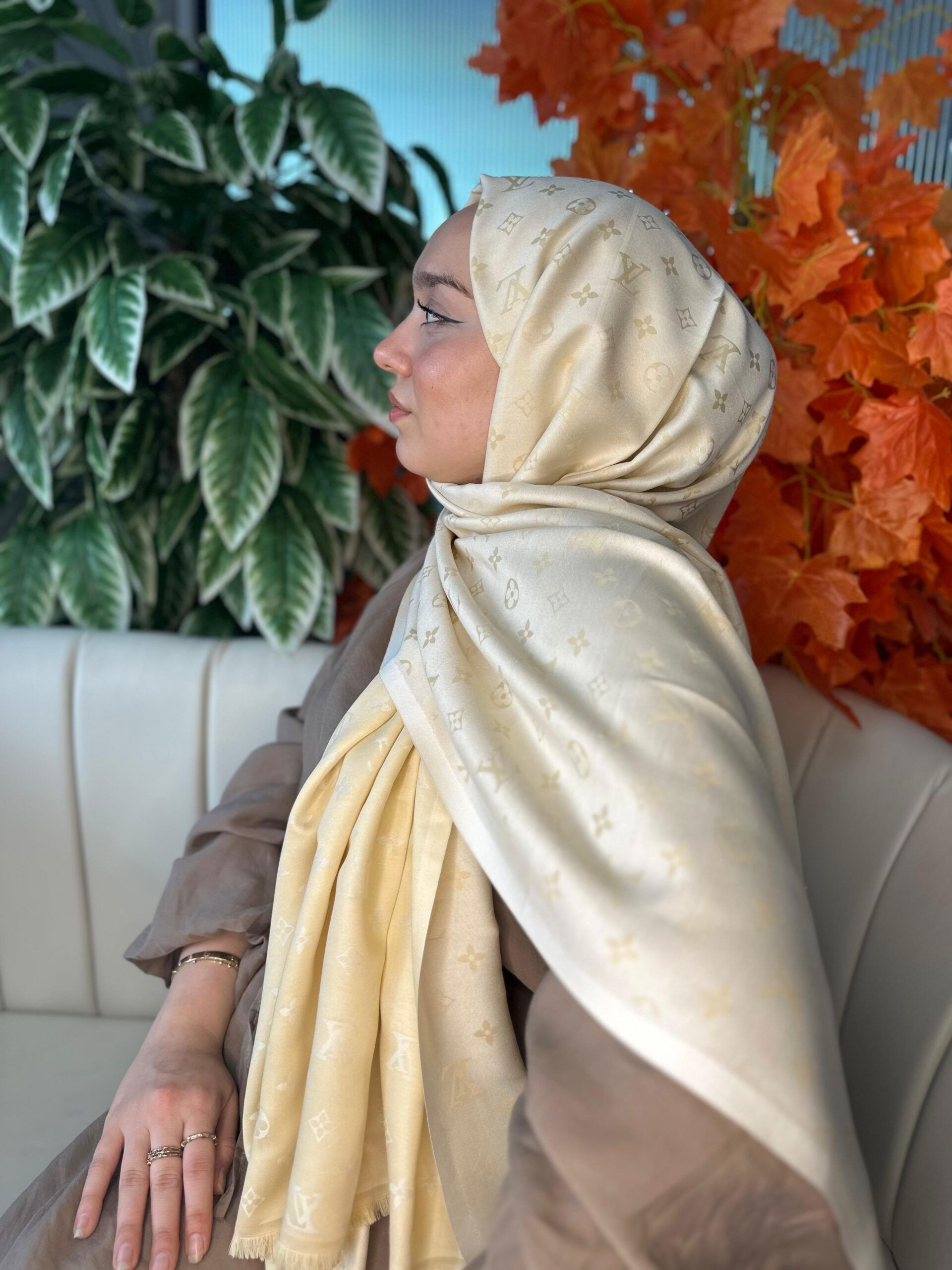 Lv Desenli İpek Kaşmir Çift Taraflı Şal – Bej