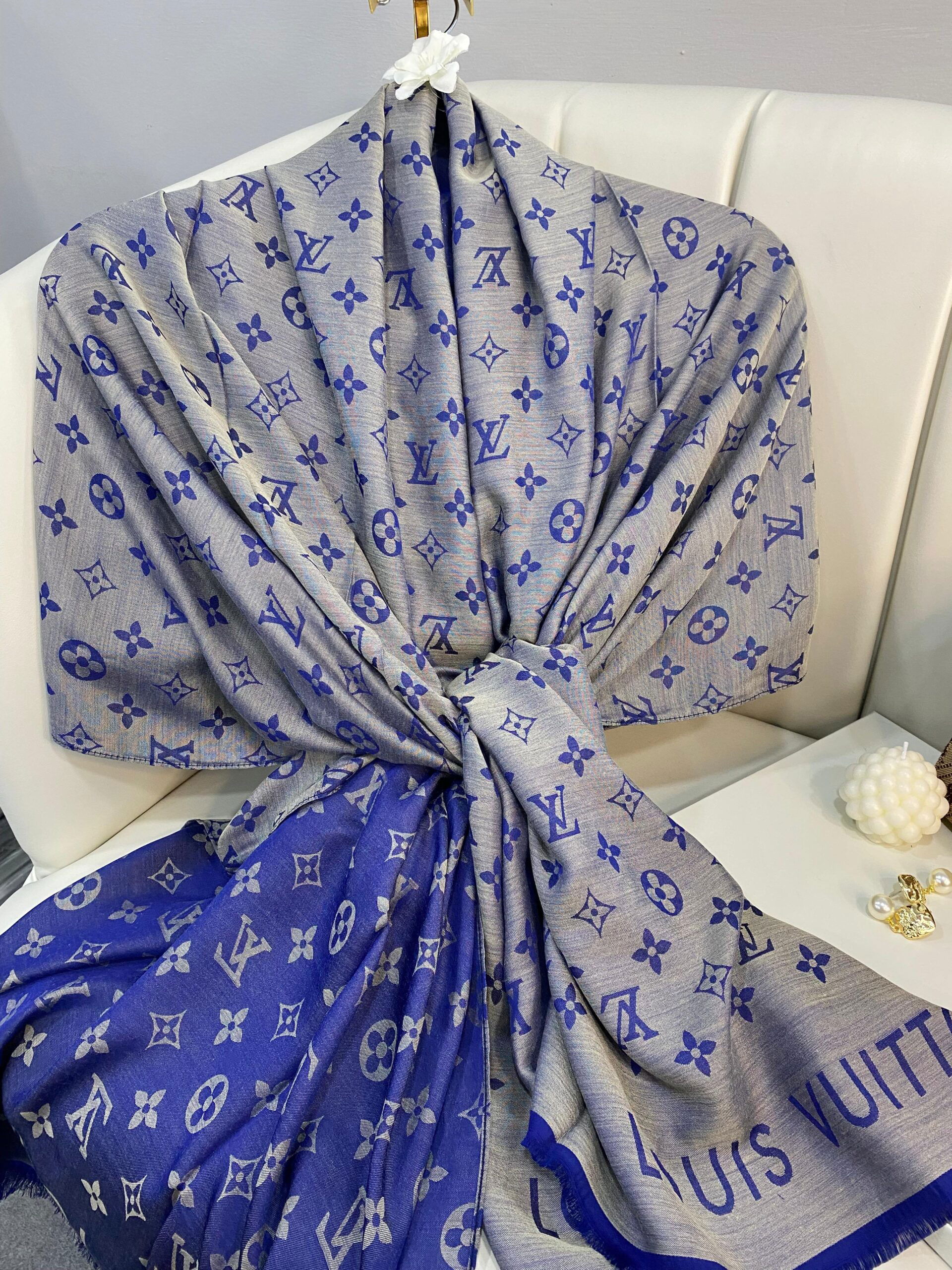 Lv Desenli İpek Kaşmir Çift Taraflı Şal – Lv Kahve