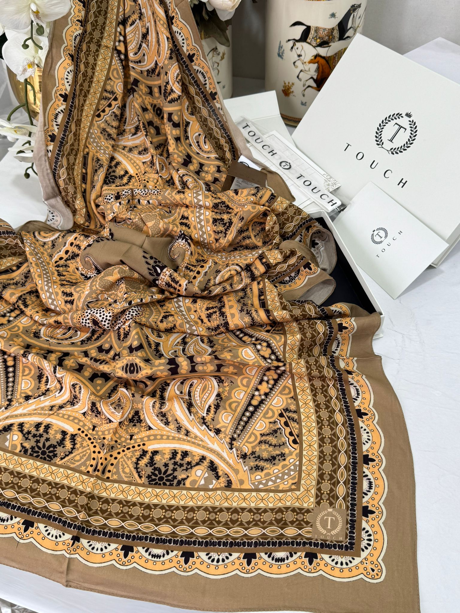 Touch İthal Etnik Desen Pamuk İpek Şal 63460- VizonTouch İthal Etnik Desen Pamuk İpek Şal 63460- Vizon