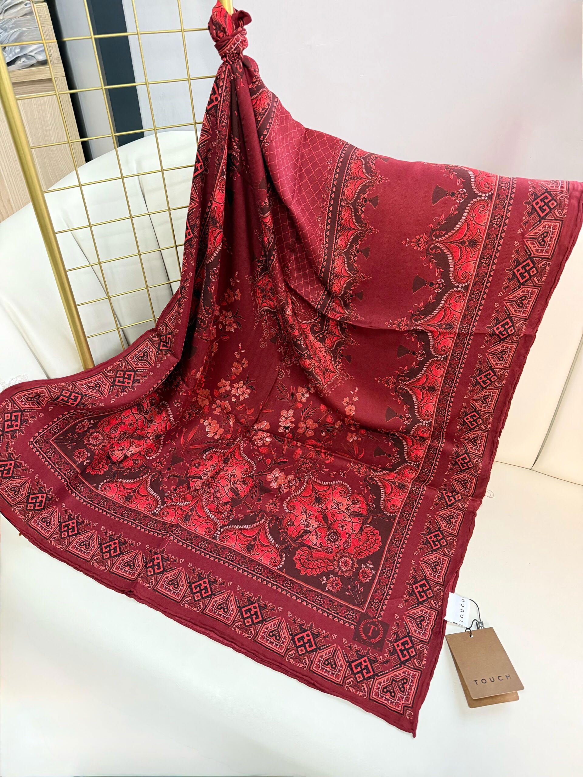 Touch İthal Etnik Desen Yün İpek Şal-(Ürün Kutuyla gelir)