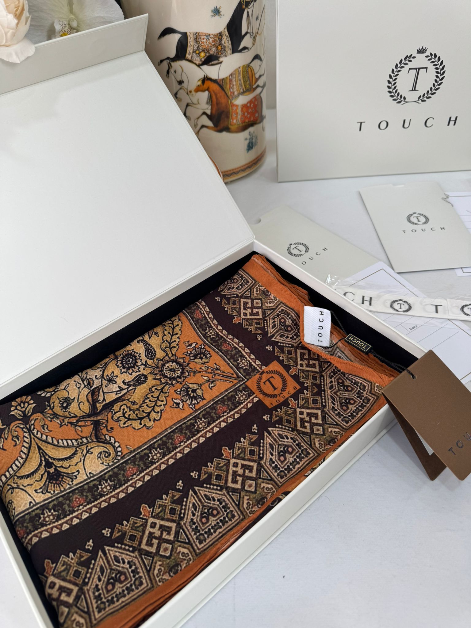 Touch İthal Etnik Desen Yün İpek Şal-(Ürün Kutuyla gelir)