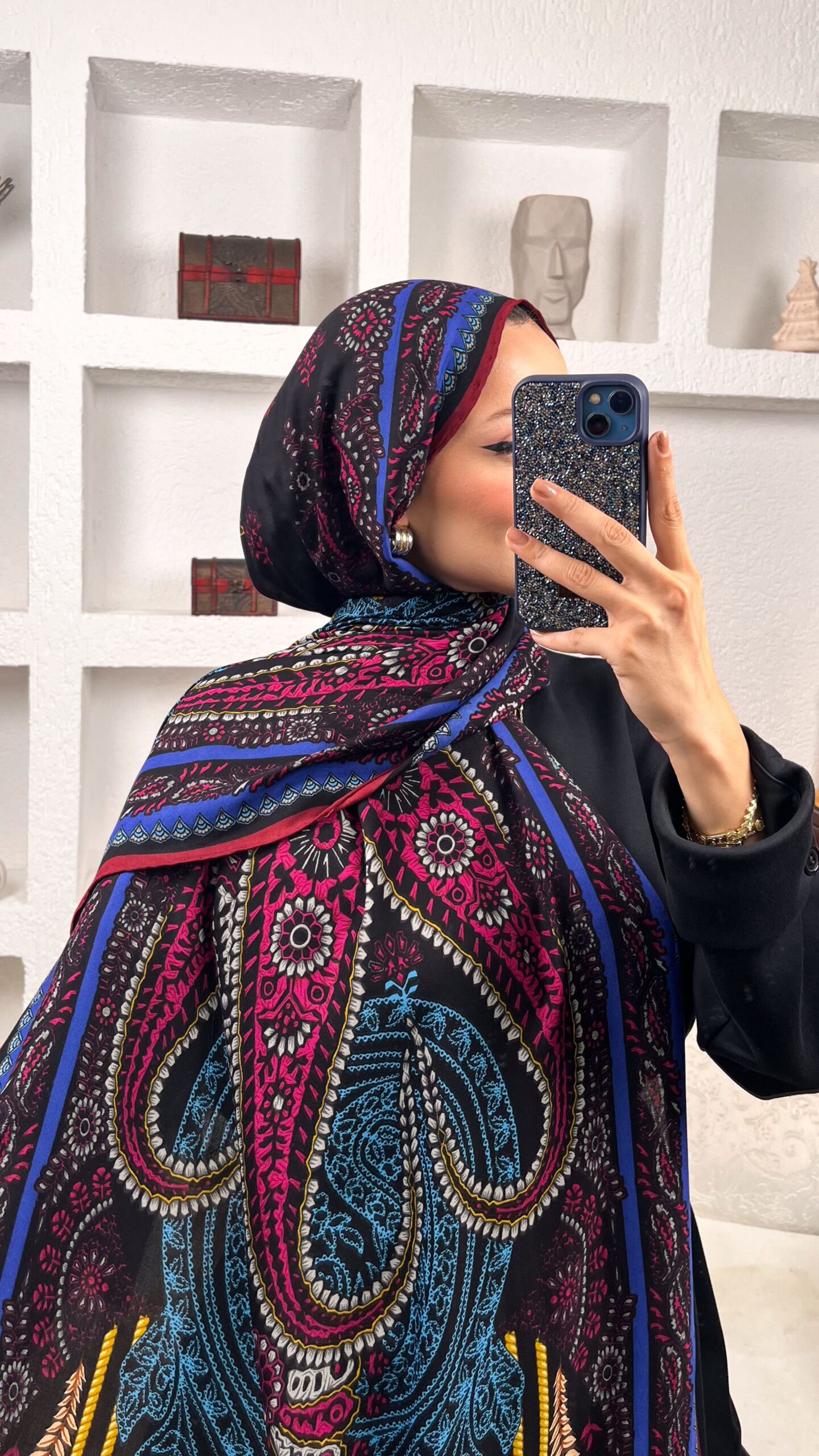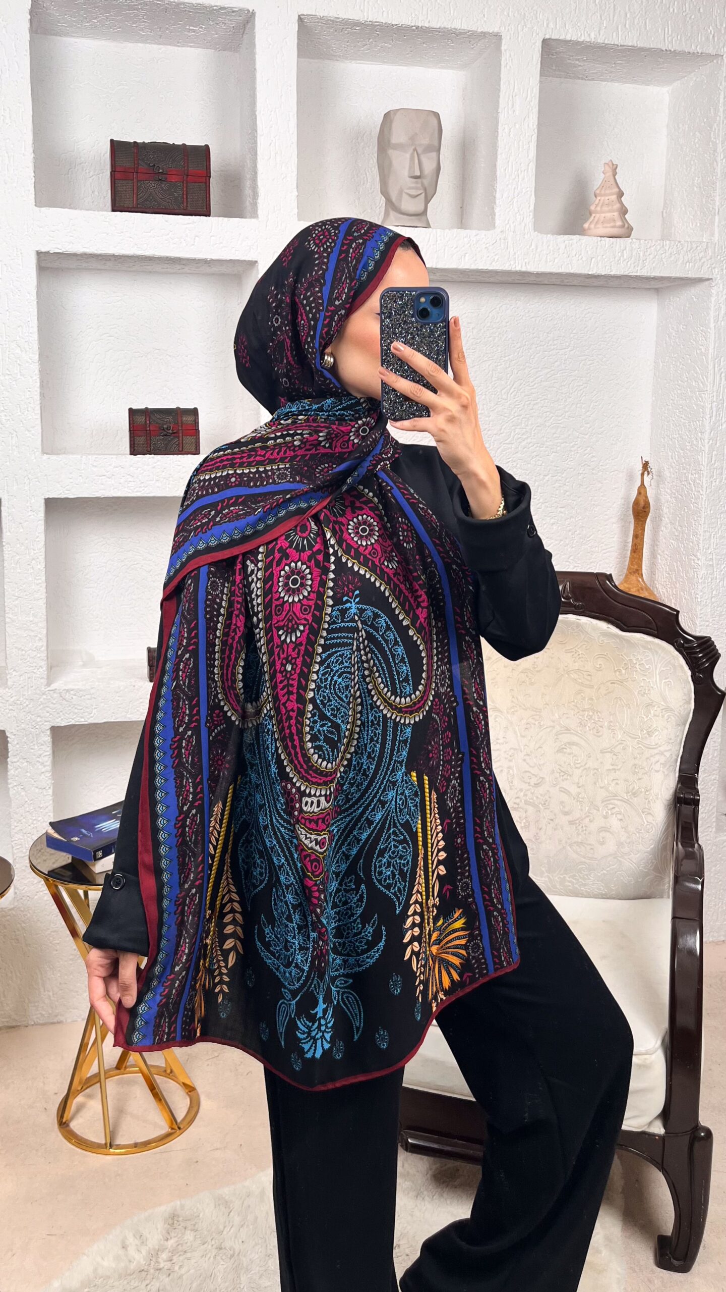 Touch İthal Etnik Desen Yün İpek Şal- Mürdüm-SiyahUygunluk: 35 adet stokta